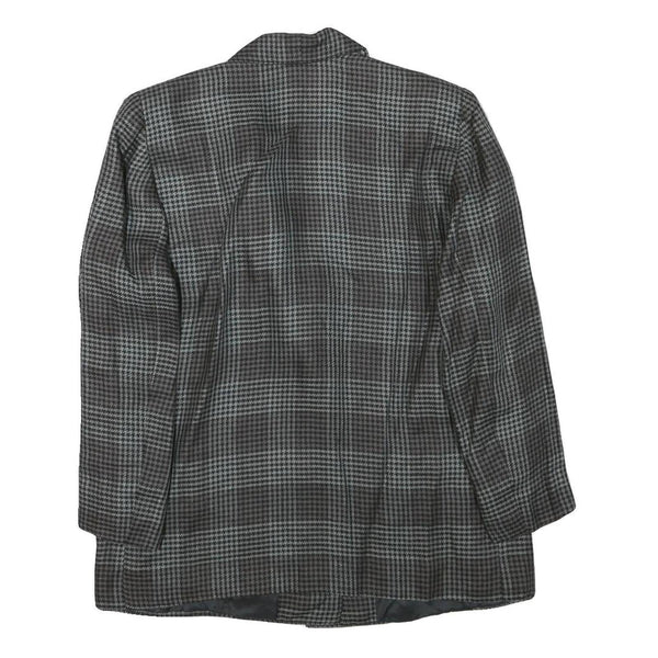 Womens Grey Check Button Jacket M Synthetic Woven Classic Timeless