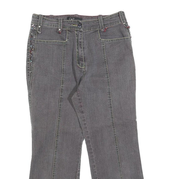 Womens Grey Regular Fit Straight Cotton Blend Jeans W26 L23 Stylish Details Zip