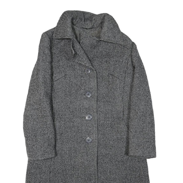 Womens Grey Wool Button Closure Classic Jacket S Woven Plain Stylish Warm