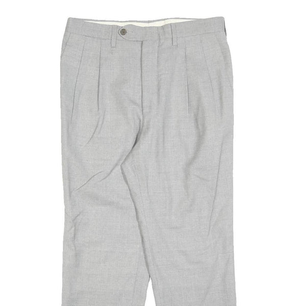 Womens Grey Wool Regular Fit Straight Trousers W30 L26 Classic Zip Closure