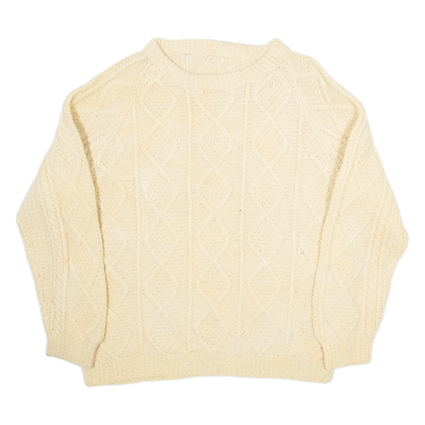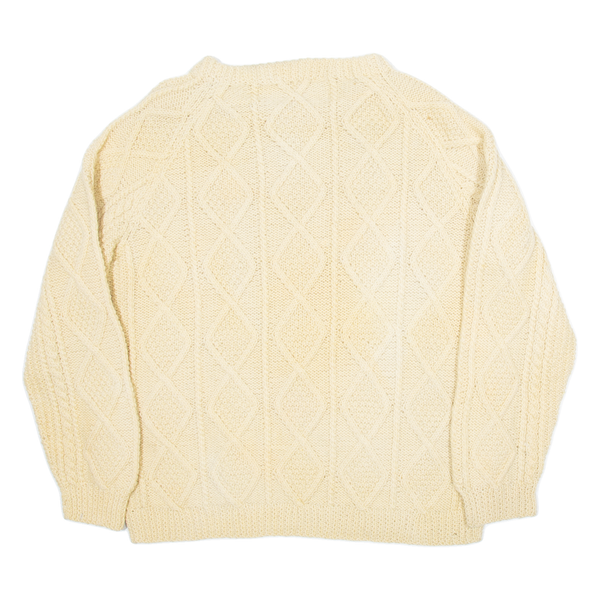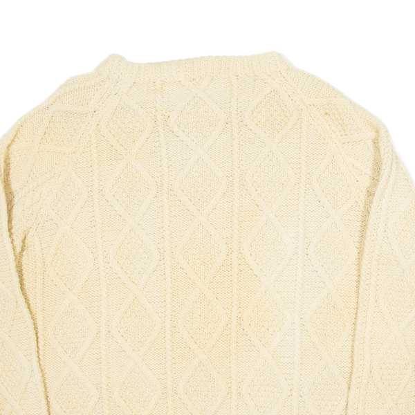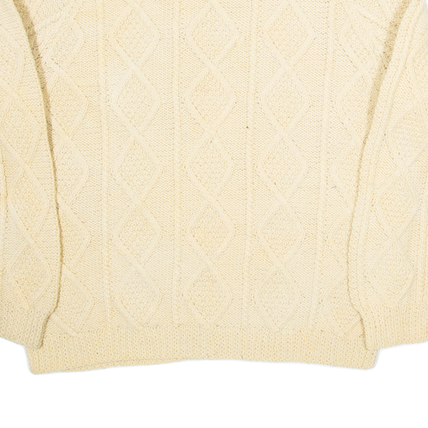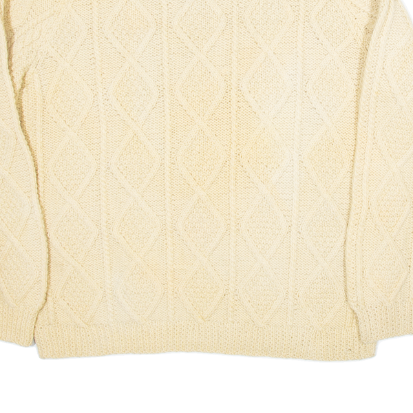 Womens Heavy Knit Jumper Beige Diamond Cable Knit M