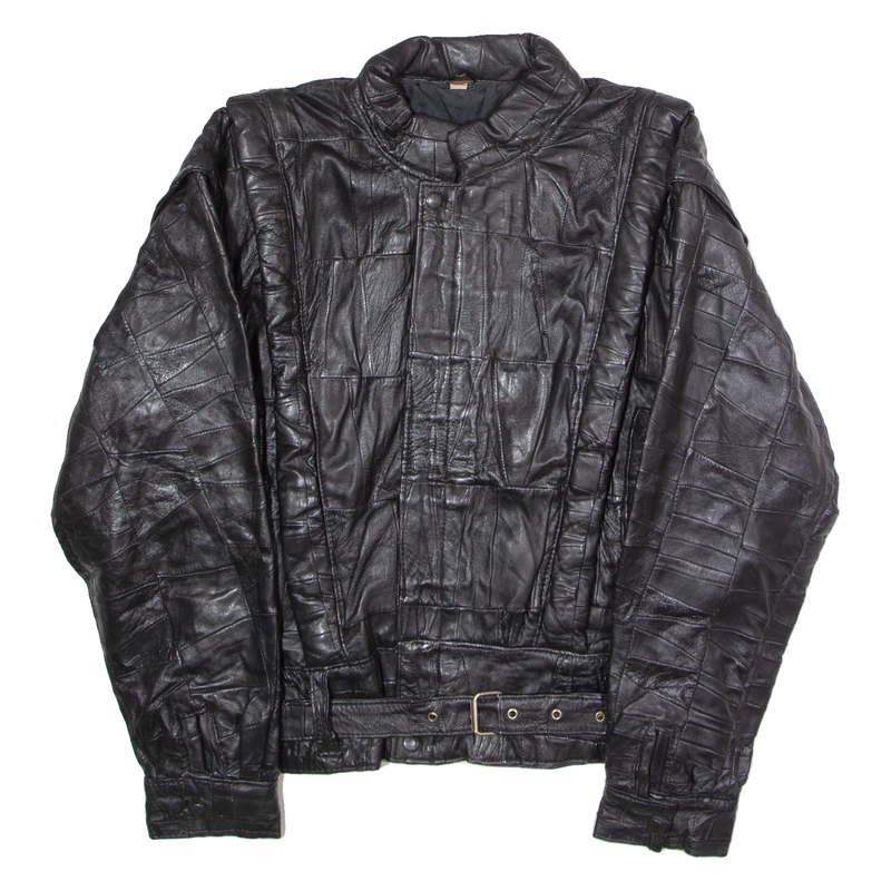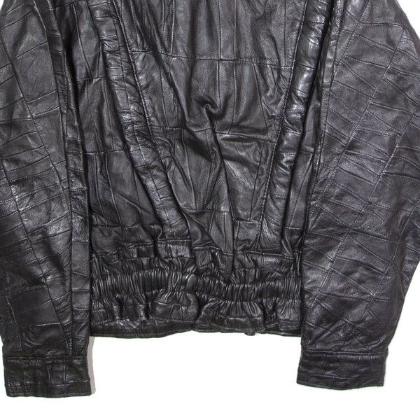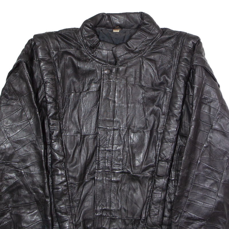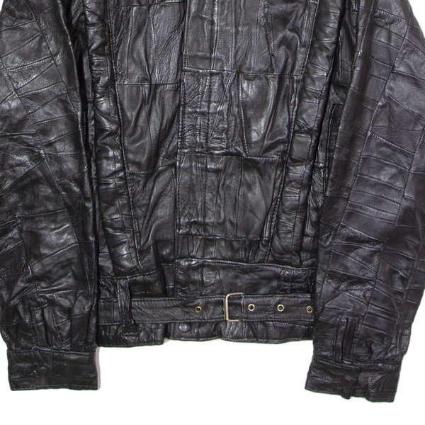Womens Jacket Black Leather 90s Patchwork XL