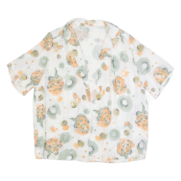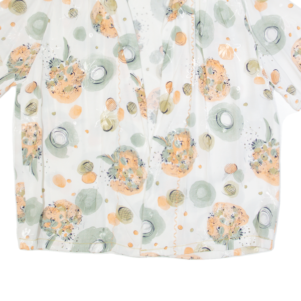 Womens Kimono Blouse White Collared Viscose Crazy Pattern M