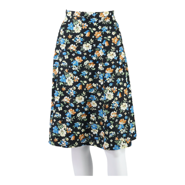 Womens Maxi Skirt Black Knee Length 90s Floral M