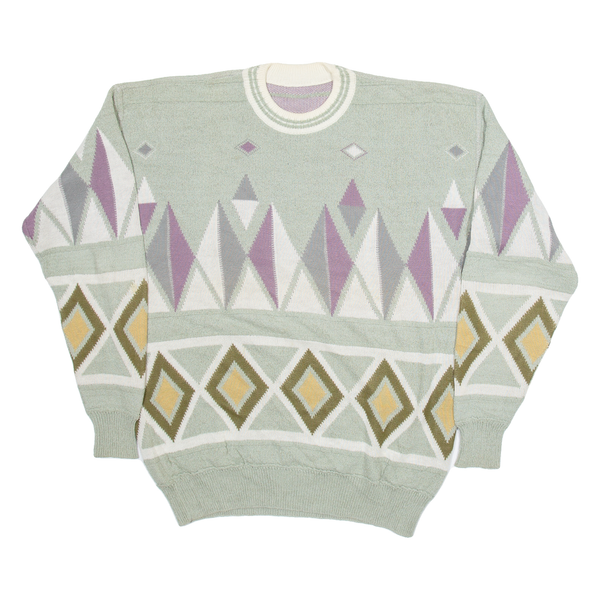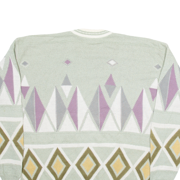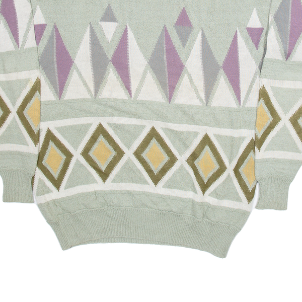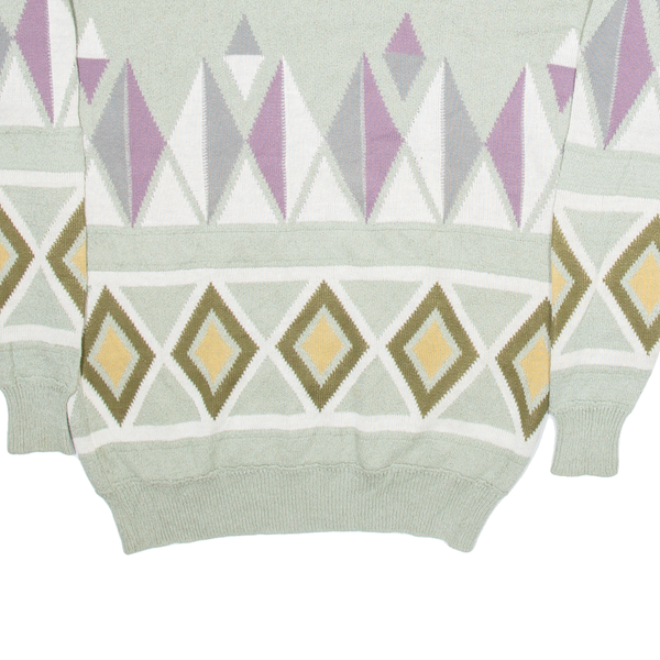 Womens Patterned Jumper Green Geometric Tight Knit M
