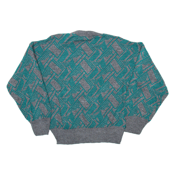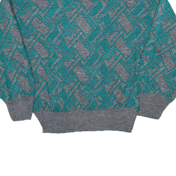 Womens Patterned Jumper Grey Geometric Tight Knit M