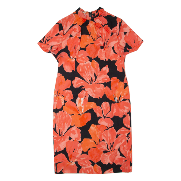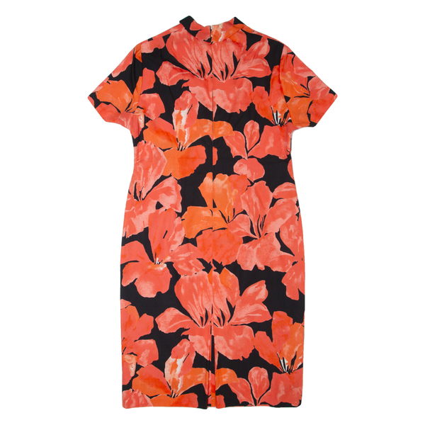Home Womens Pencil Dress Black 90s Floral Short Sleeve Midi L