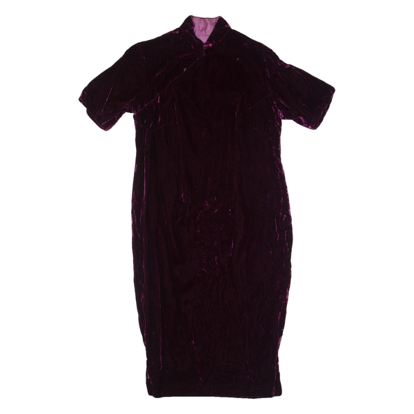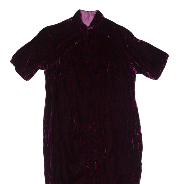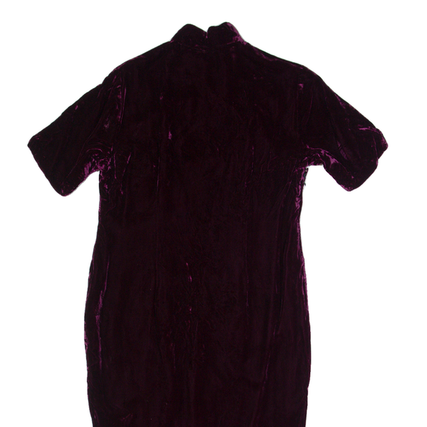 Womens Pencil Dress Purple Velvet 90s Short Sleeve Midi M
