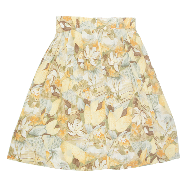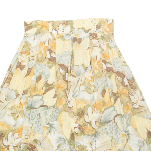 Womens Pleated Skirt Beige Midi Viscose Floral L