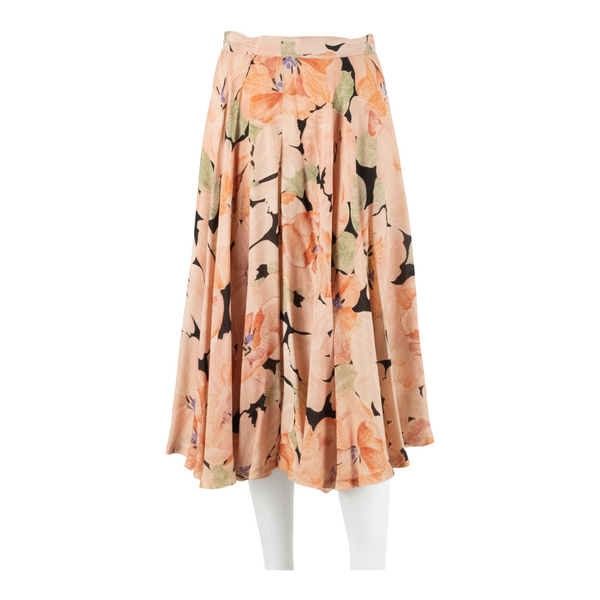 Womens Pleated Skirt Pink Midi Floral S