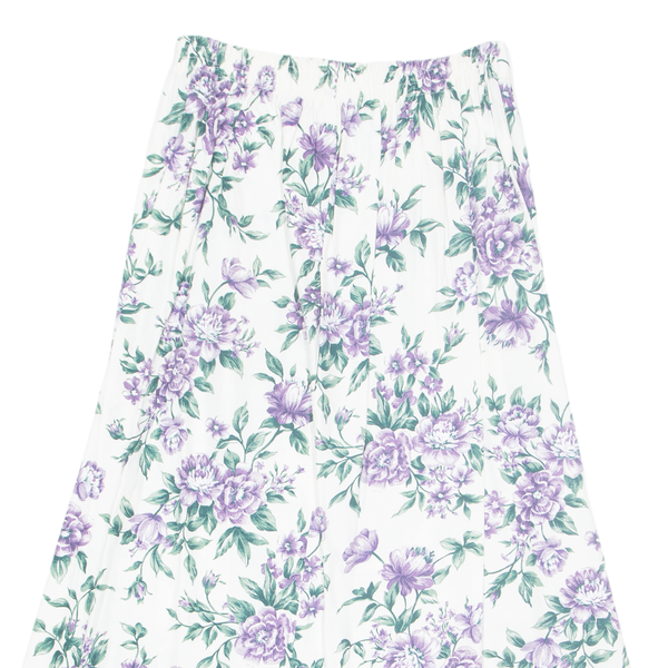 Womens Pleated Skirt White Long 90s Floral S