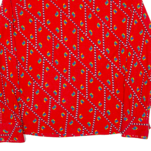 Womens Polo Shirt Red Crazy Pattern Long Sleeve S