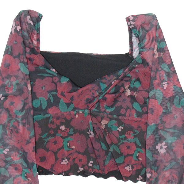 Womens Printed Blouse Black Long Sleeve Floral M