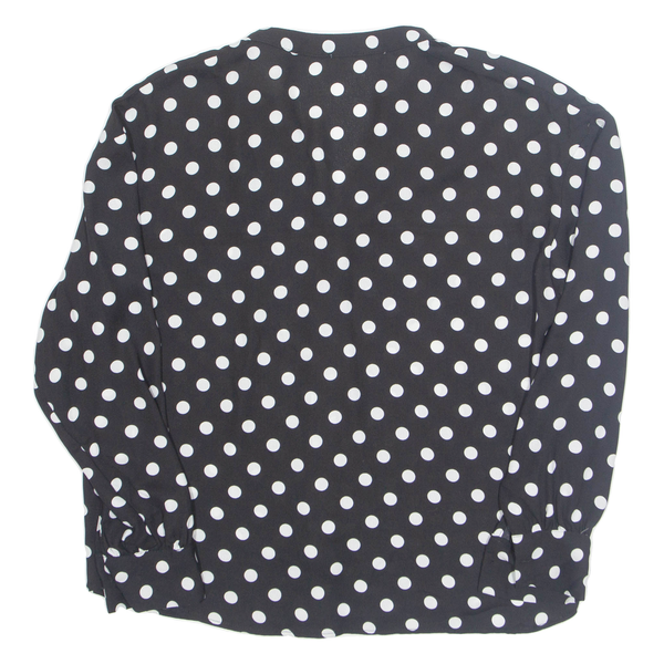 Womens Printed Blouse Black V-Neck Long Sleeve Spotted L