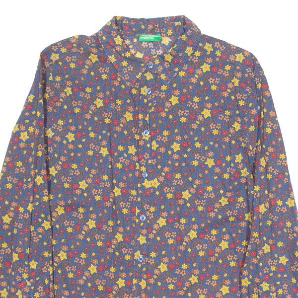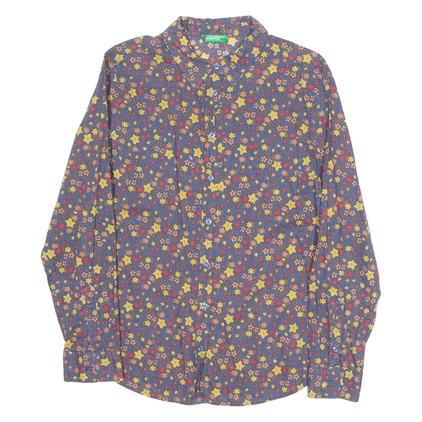Womens Printed Blouse Blue Long Sleeve Floral L