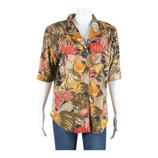Womens Printed Blouse Brown V-Neck Floral L