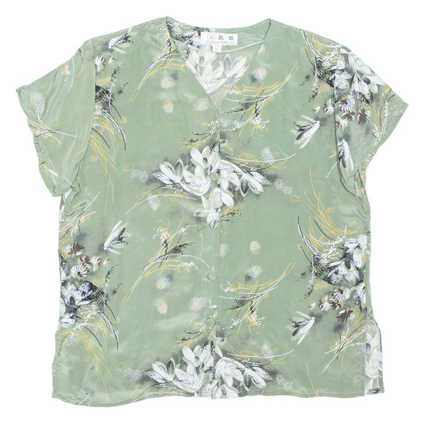 Home Womens Printed Blouse Green V-Neck Floral XL