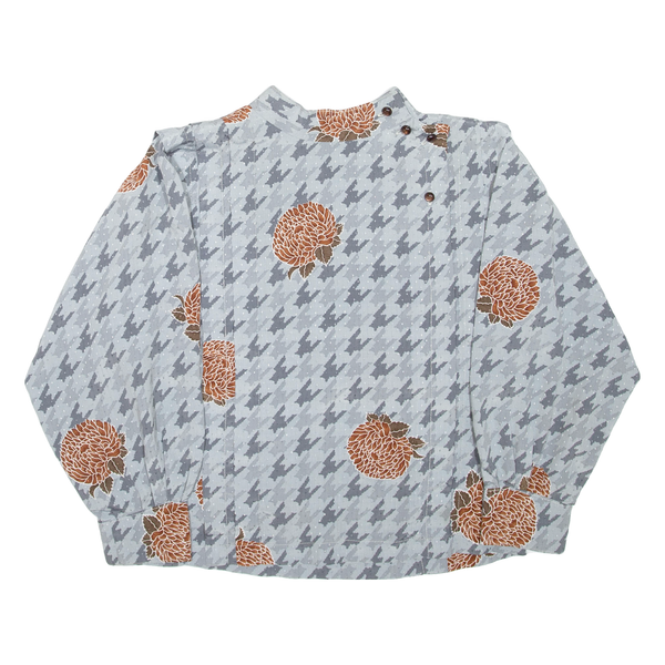 Womens Printed Blouse Grey Button Neck Long Sleeve Floral L