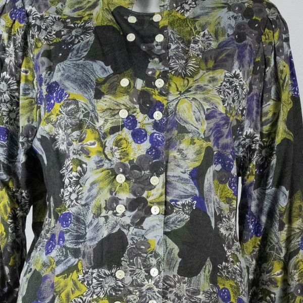 Womens Printed Blouse Grey Collared Long Sleeve 90s Floral UK 12