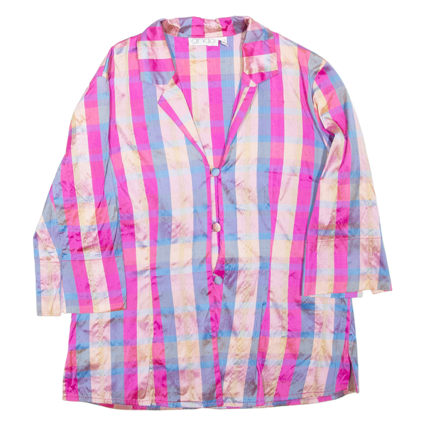 Womens Printed Blouse Pink Collared 3/4 Sleeve Check M