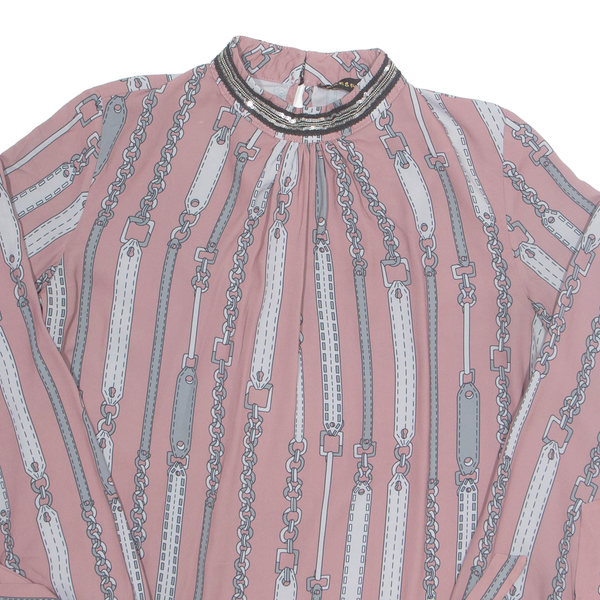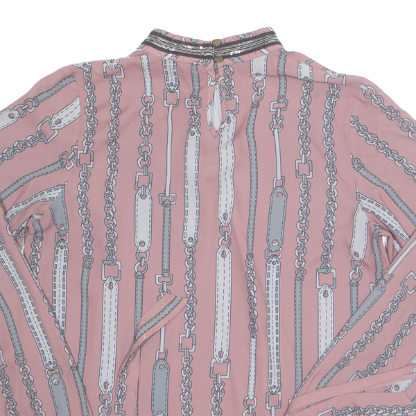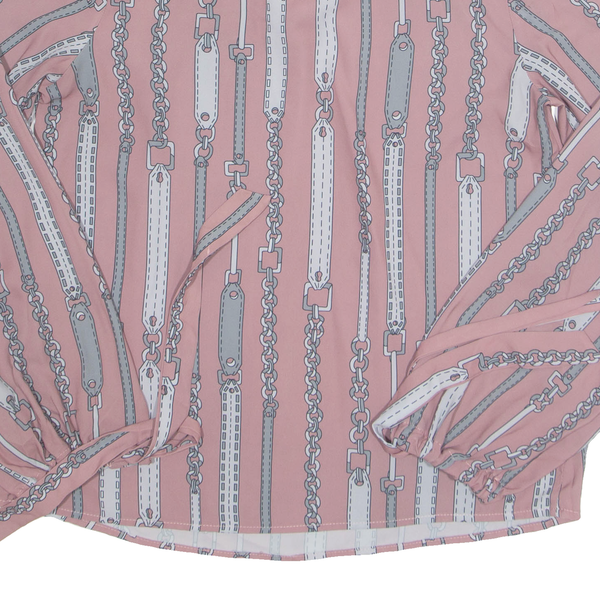 Womens Printed Blouse Pink V-Neck Long Sleeve Crazy Pattern M