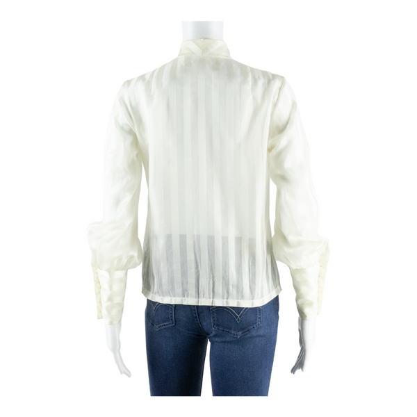 Womens Printed Blouse White Long Sleeve Striped M