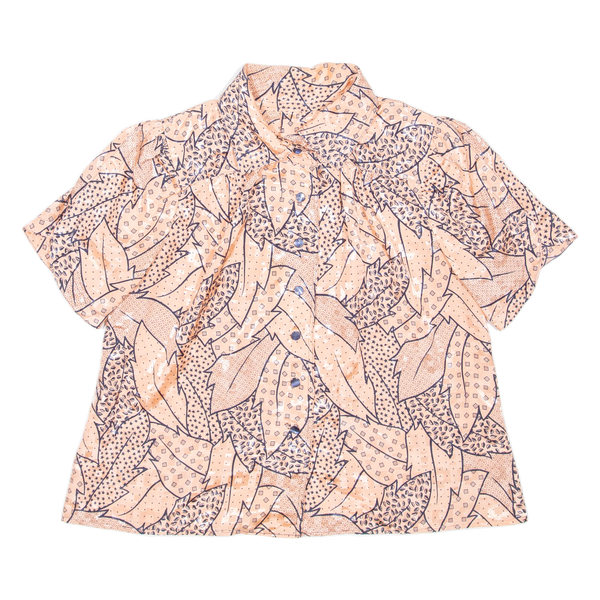 Womens Printed Shirt Pink Collared Crazy Pattern L