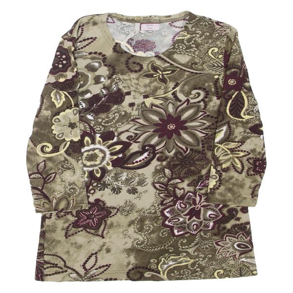 Womens Printed Top Green 3/4 Sleeve Floral M