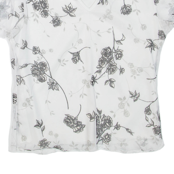 Womens Printed Top White V-Neck Floral S