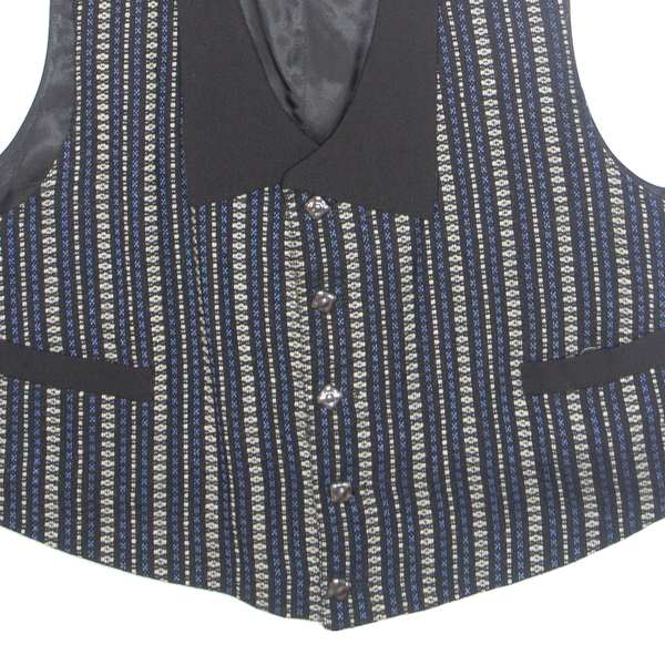 Womens Printed Waistcoat Black V-Neck Sleeveless Striped L