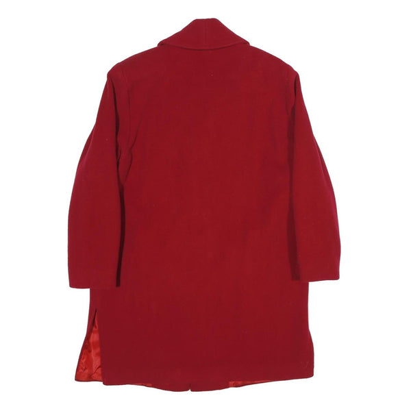 Womens Red Wool Blend Button Jacket M Plain Classic Fit Long Sleeve