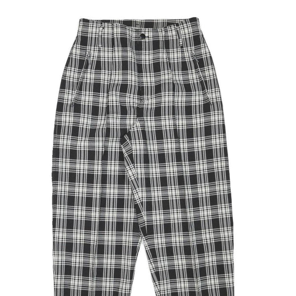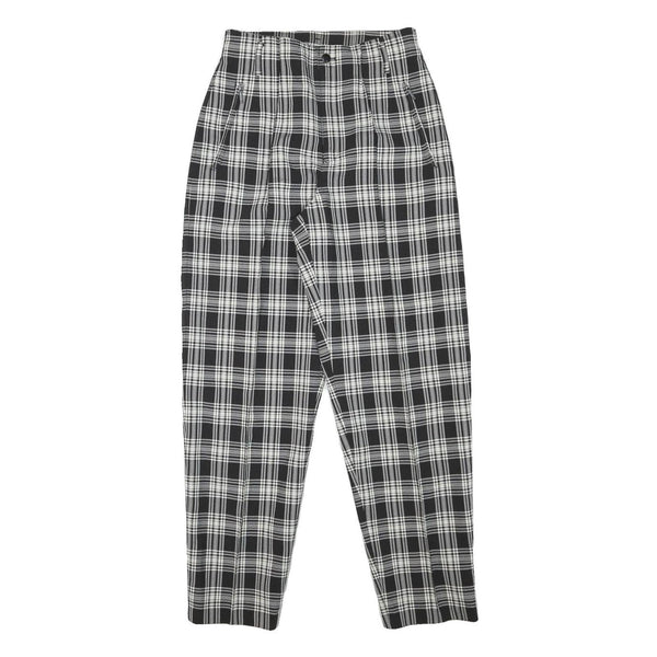 Womens Relaxed Black & White Check Trousers W25 L28 Polyester Blend Zip Closure