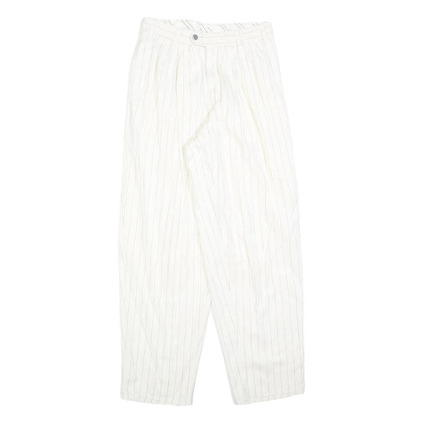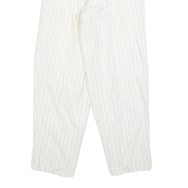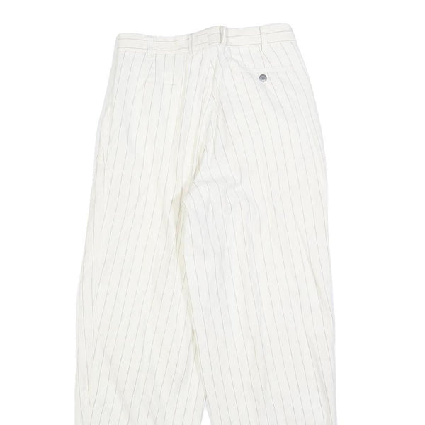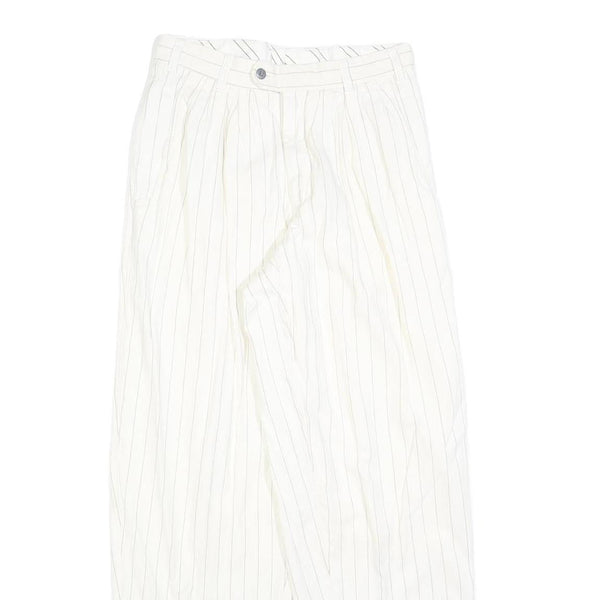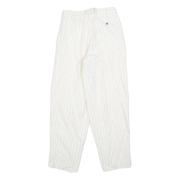 Womens Relaxed Fit White Pinstripe Trousers W26 L30 Classic Straight Zip Closure