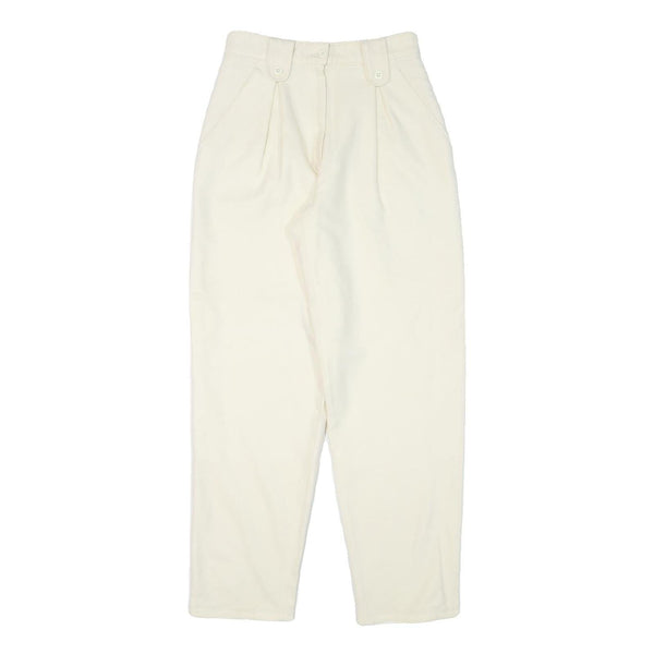 Womens Relaxed Fit Wool Cream Trousers W25 L28 Zip Closure Plain