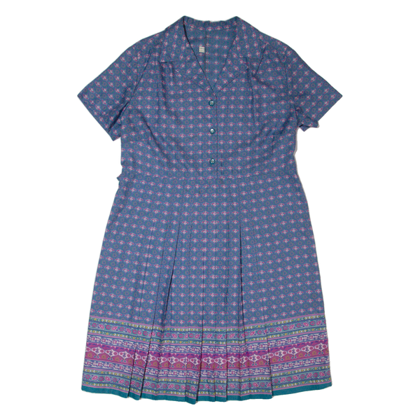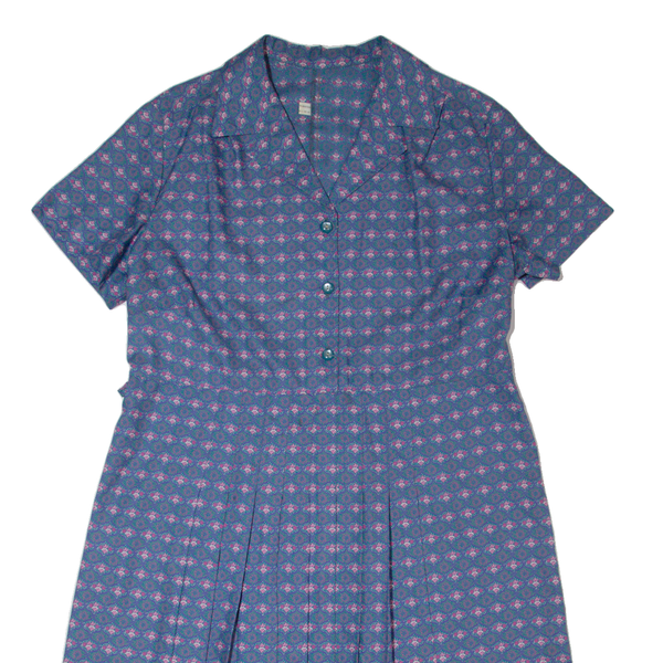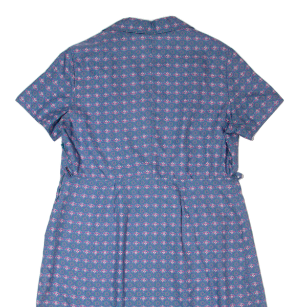Womens Shift Dress Blue 90s Striped Short Sleeve Midi XL