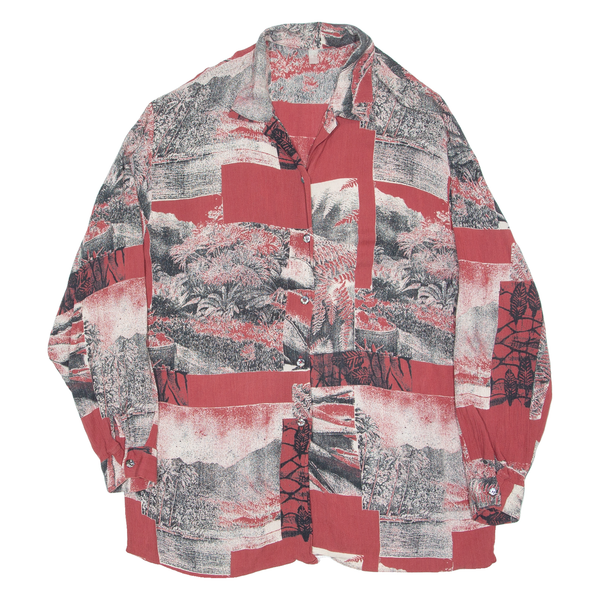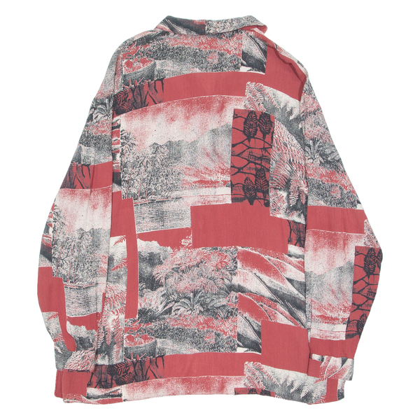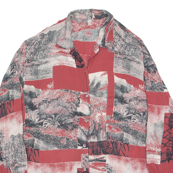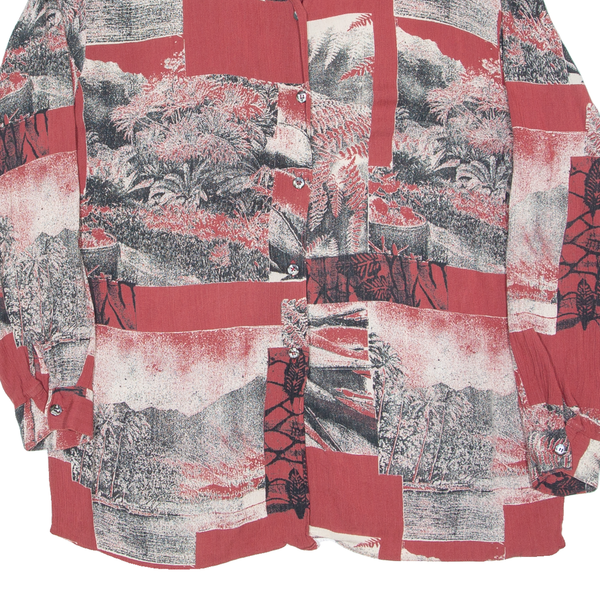 Womens Shirt Maroon 90s Crazy Pattern Long Sleeve L