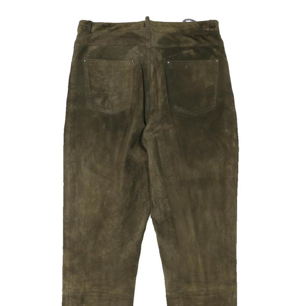 Womens Slim Fit Suede Brown Slim Tapered Trousers W29 L28 Leaf Patch