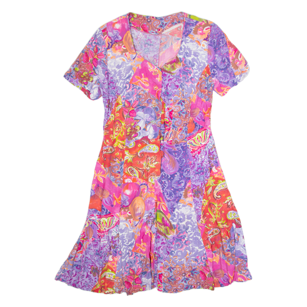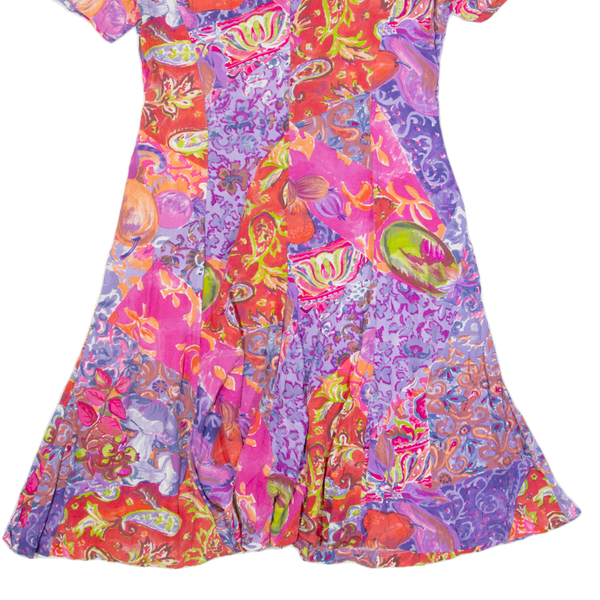 Womens Tea Dress Pink 90s Crazy Pattern Short Sleeve Knee Length M