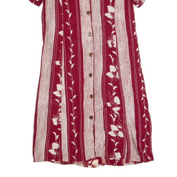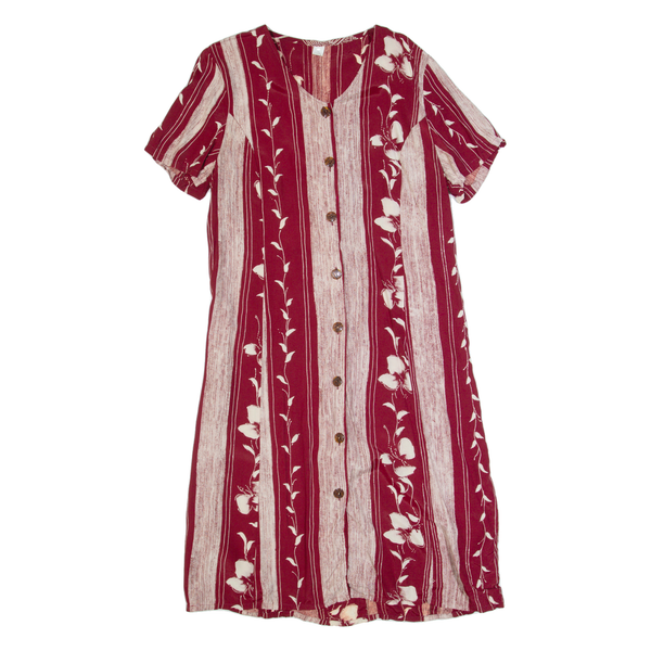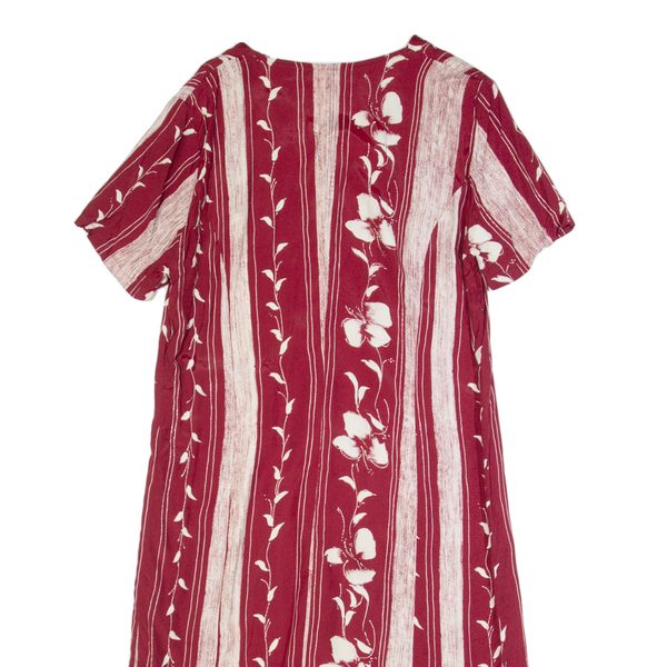 Womens Tea Dress Red 90s Floral Short Sleeve Long L