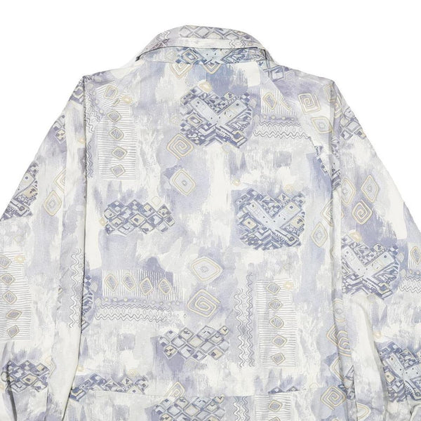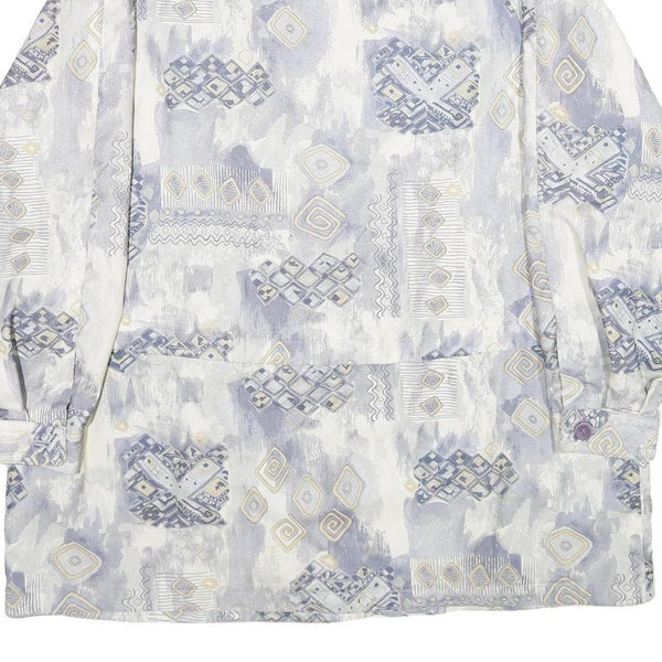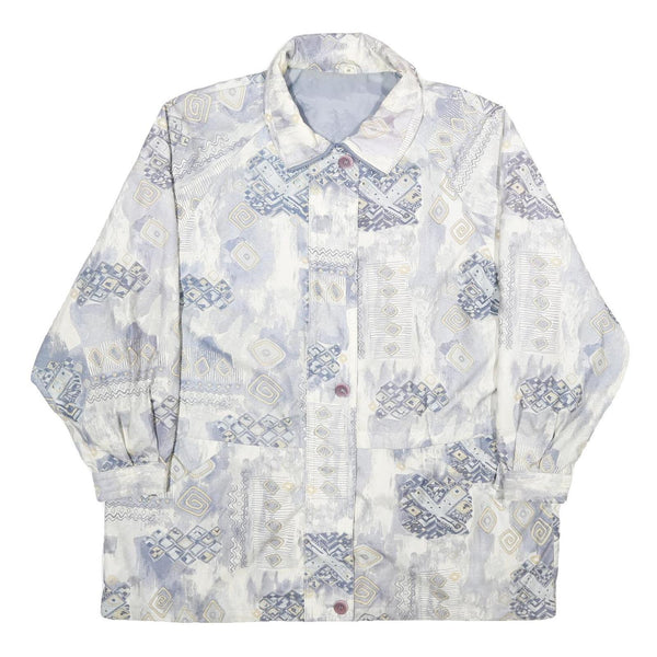 Womens White & Blue Geometric Pattern Jacket UK 20 Polyester Blend Zip Closure