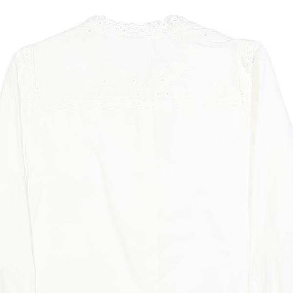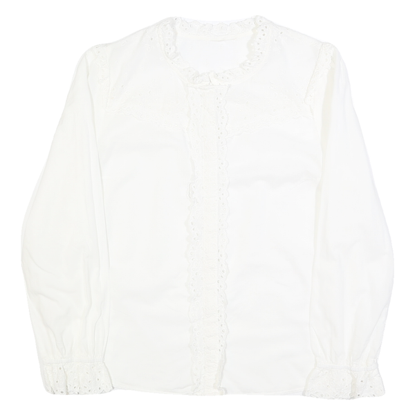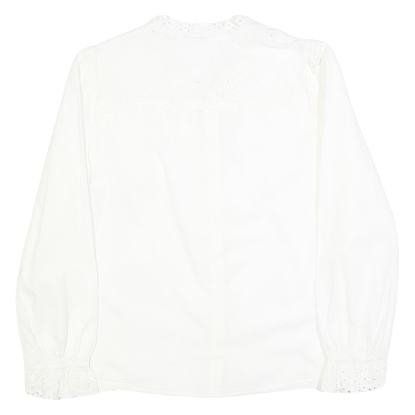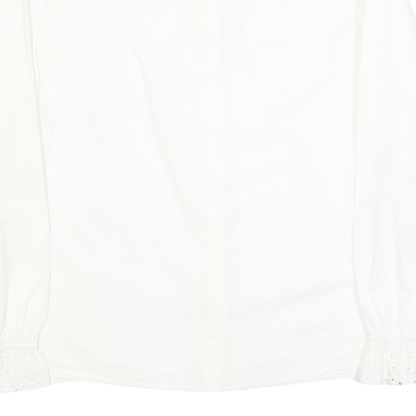 Home Womens White Cotton Blend Blouse Long Sleeve Round Neck Embroidered M Lace Trim
