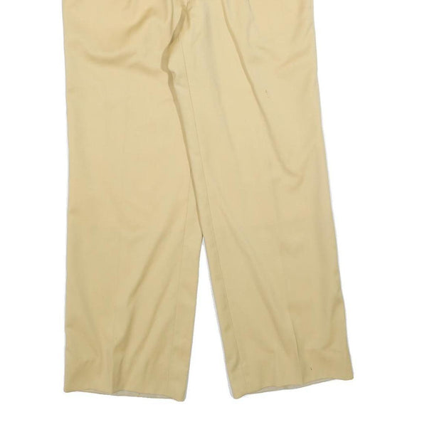 Womens Wool Relaxed Beige Trousers W30 L28 Zip Plain Wide-Leg Casual Smart