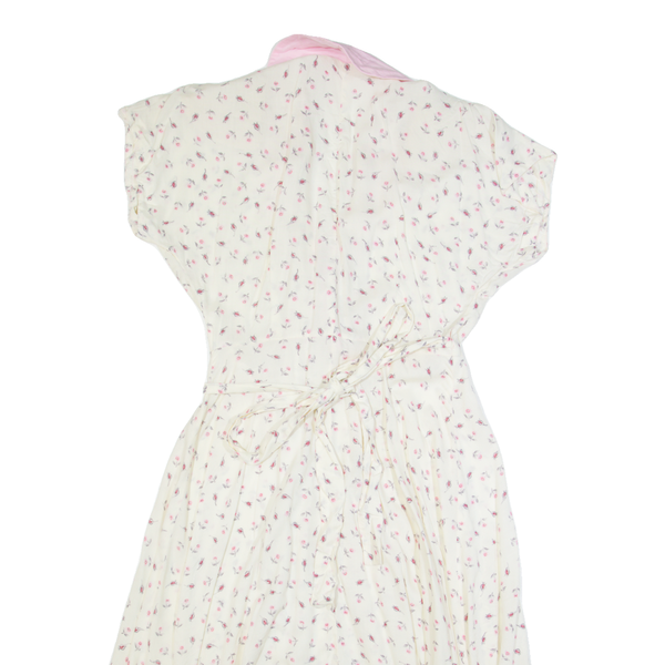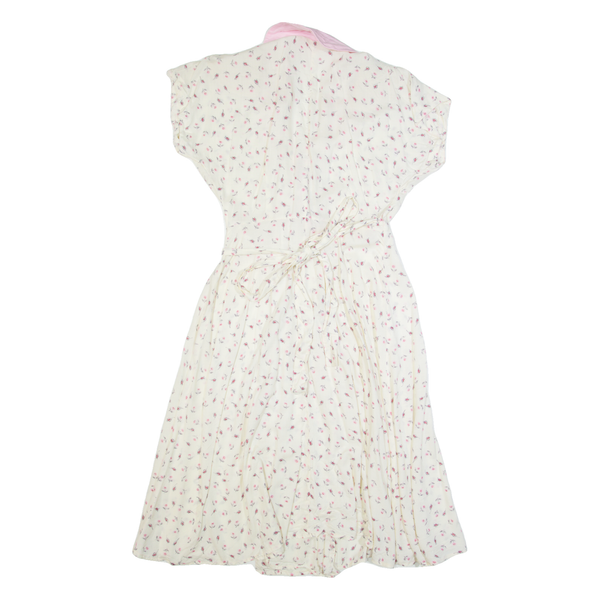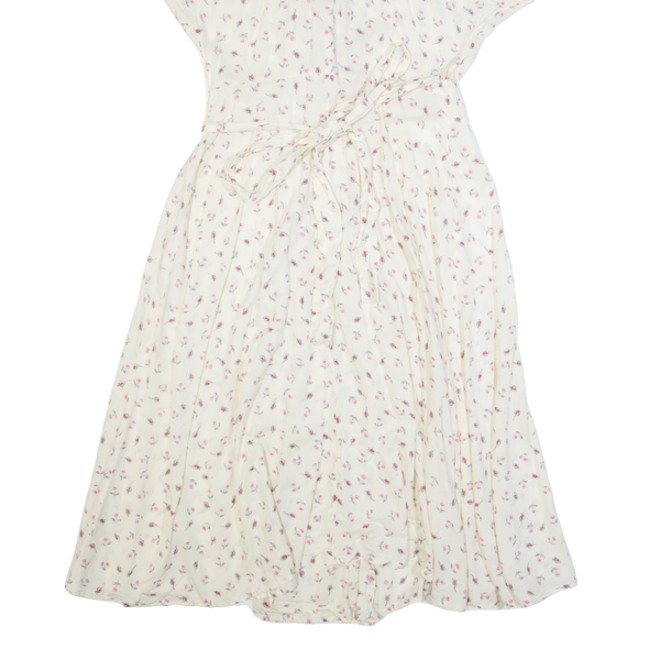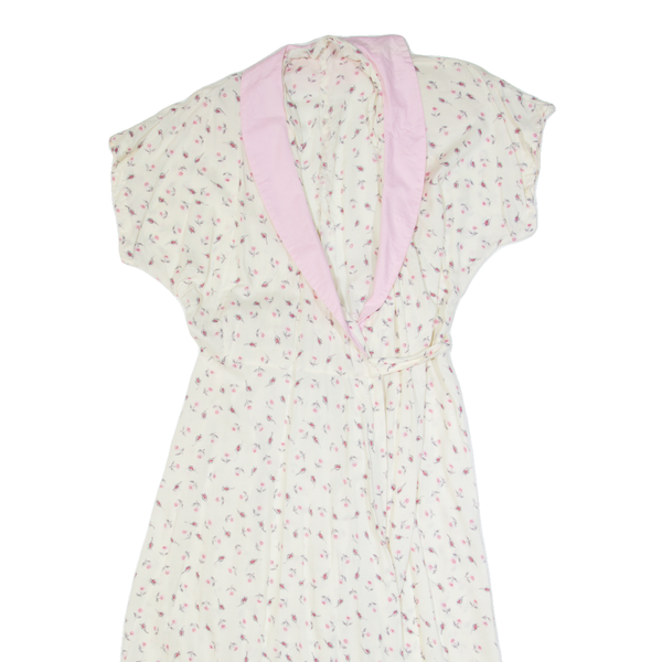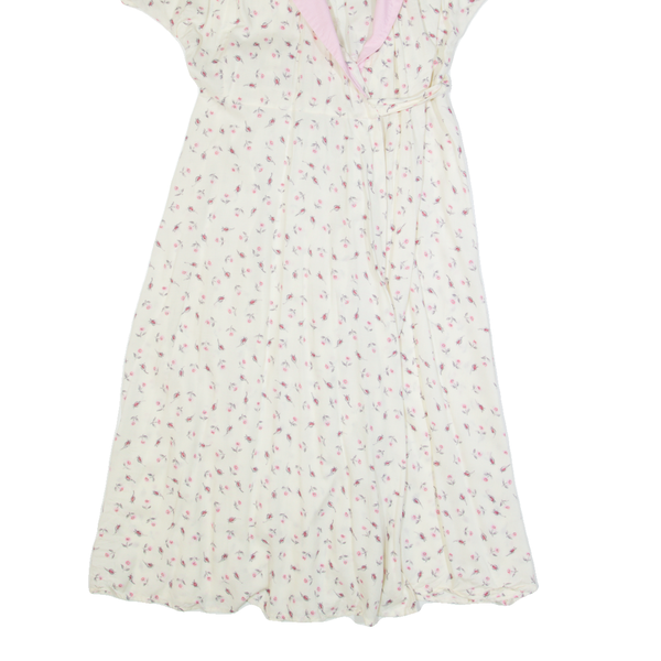 Womens Wrap Dress Cream 90s Floral Short Sleeve Long M