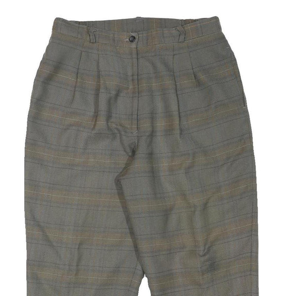 Wool Blend Womens Grey Relaxed Tapered Trousers W30 L21 Classic Checked Pattern