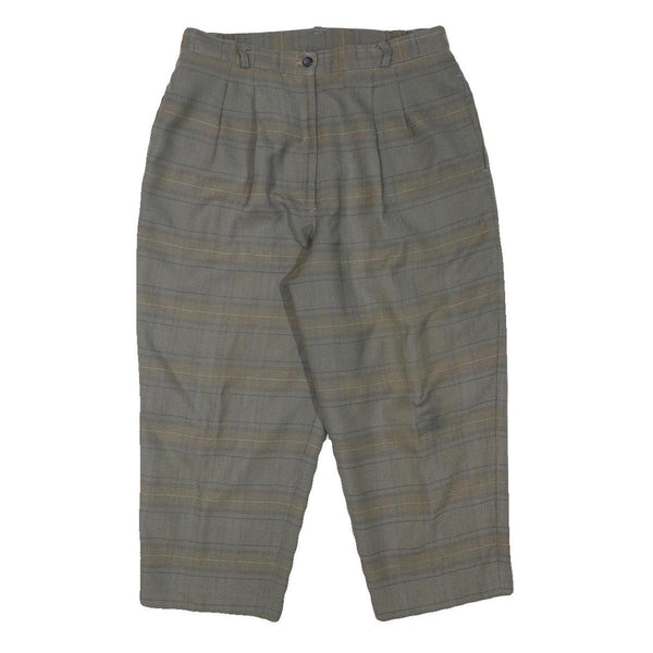 Wool blend womens grey relaxed tapered trousers w30 l21 classic checked pattern