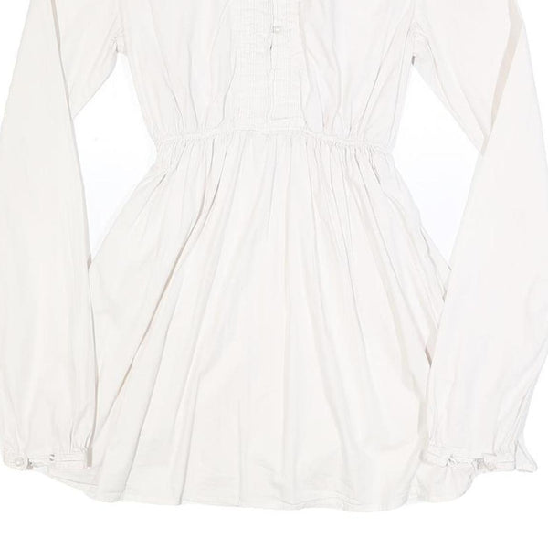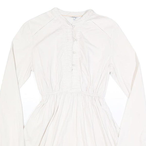WOOLRICH Womens White Cotton Blend Day Dress Plain Long Sleeve M Button Detail