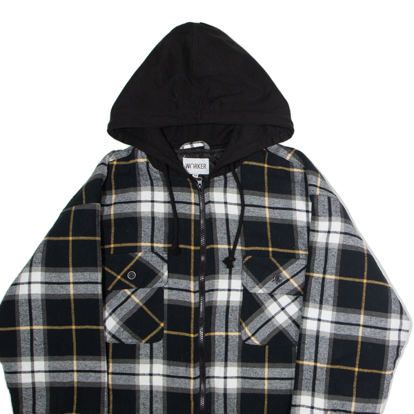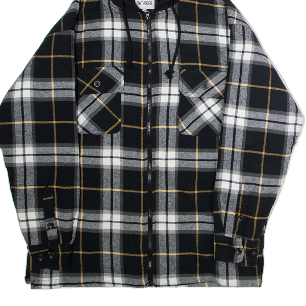 Home WORKER Mens Lumberjack Jacket Black Flannel Hooded Check M