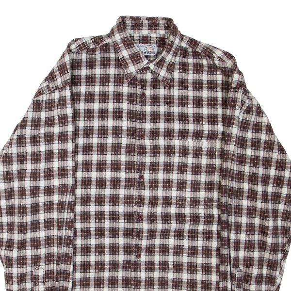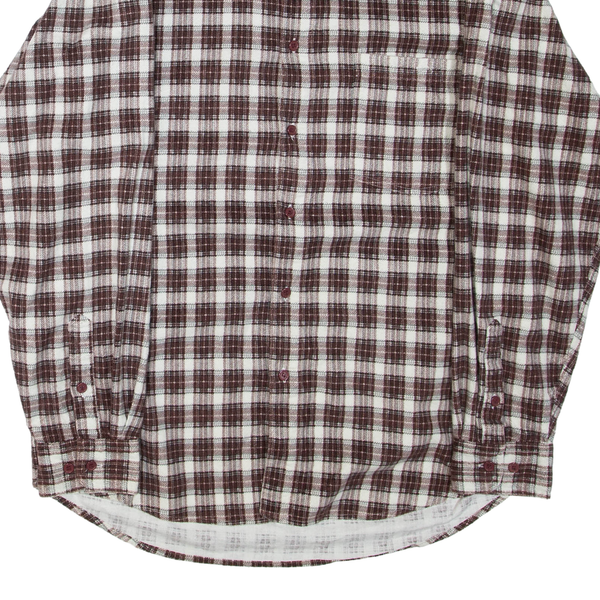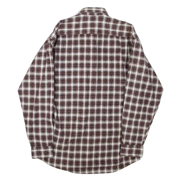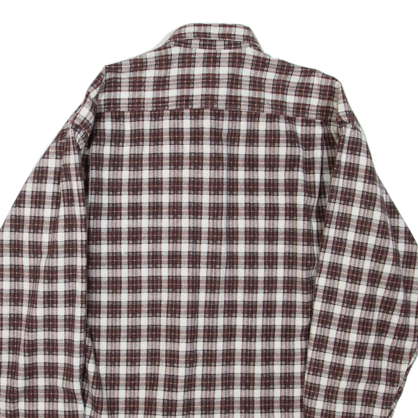 WORLD OF BASIC Mens Flannel Shirt Brown Check Long Sleeve M