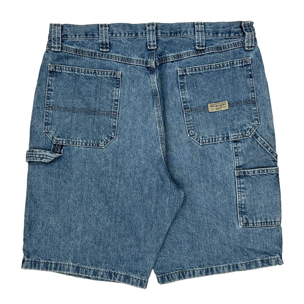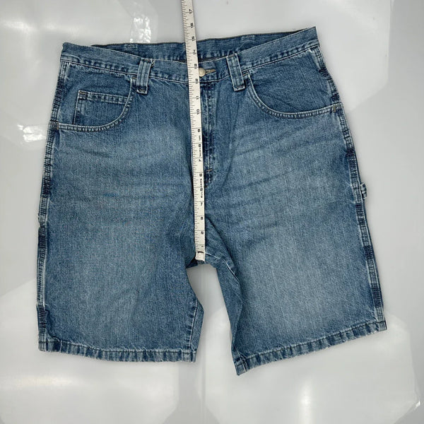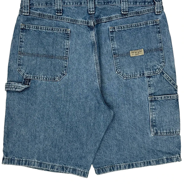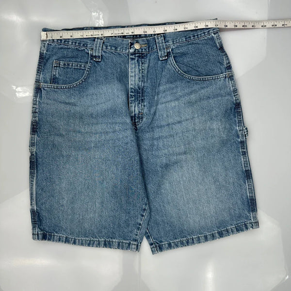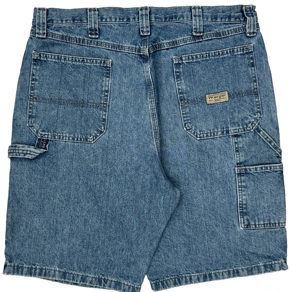 Wrangler Denim Shorts, fit a 34″ Waist and 9″ inseam.