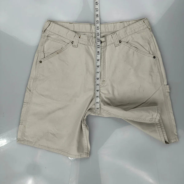 Wrangler Carpenter Shorts, fit a 32″ Waist and 9″ inseam.
